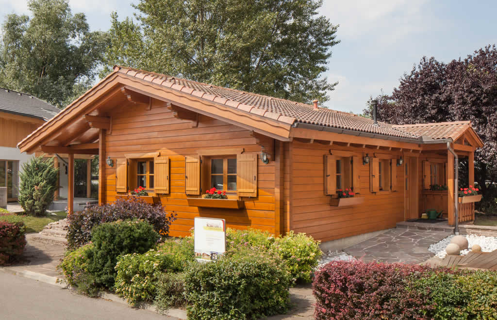 Das Ebenerdige Wohnblockhaus von Pronaturhaus ist ein gelungenes Beispiel für einen Blockhaus-Bungalow mit Wintergarten. Es entspricht dem Wunsch vieler Menschen nach „Wohnen auf einer Ebene, ohne Stiegen steigen zu müssen“ in Kombination mit gesunden Baustoffen.