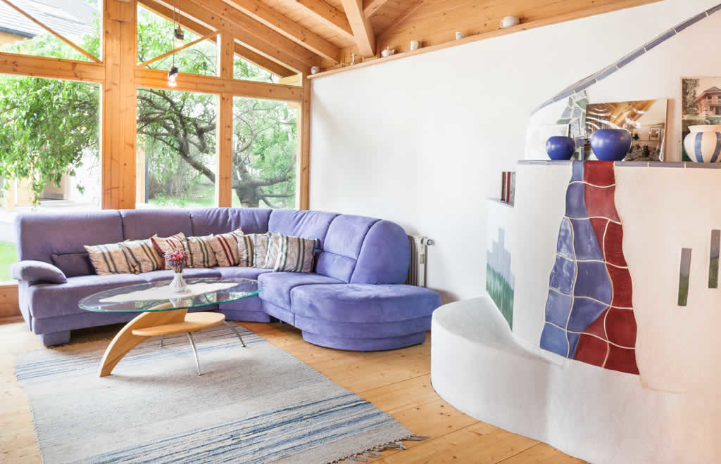 Dieses ebenerdige Wohnblockhaus ist bestens für kleine Familien geeignet: Ein gemütlicher Wohnraum (mit Kachelofen) und zwei Schlafzimmer stehen zur Verfügung. Die großzügige Raumhöhe lässt viel Luft zum Atmen, und die sichtbare Dachkonstruktion ist ein interessanter Blickfang. Von außen markant das flache Satteldach mit 18° sowie das Giebel-Vordach als Eingangsüberdachung. Die verbaute Fläche beträgt 90 m², die Wohnnutzfläche 79 m².Wohnnutzfläche 79 m².
