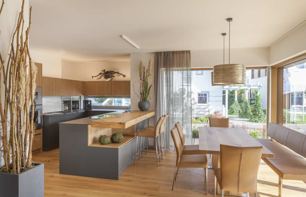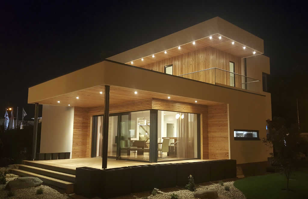 Das TREND Systemhaus von Holzbau BERGER bietet Flexibiltät von 84 – 163 m² Wohnnutzfläche und unterschiedlichste Dachformen. Das Musterhaus in der Blauen Lagune ist als Variante mit Flachdach-Halbaufstockung konzipiert, das im Obergeschoß Platz für zwei zusätzliche Zimmer und ein Bad einräumt. Das Erdgeschoss ermöglicht besonders großzügiges, helles Wohnen. Auch ein Schlaf- oder Gästezimmer und ein Bad sind auf dieser Ebene eingeplant.
